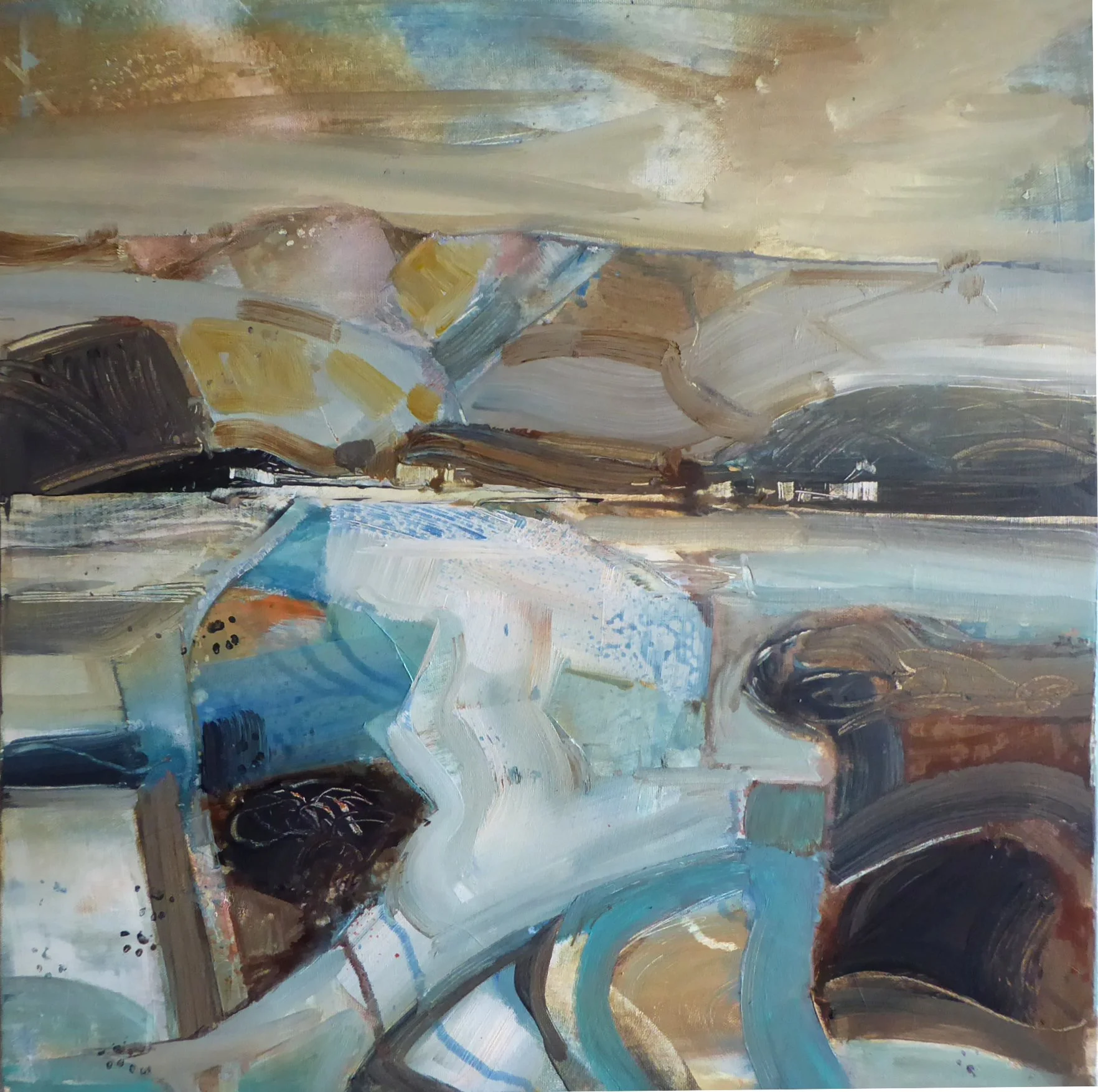 Elizabeth's art is rich in texture, colour, and inner space. Her studio practice is deeply connected to her surroundings: the rugged terrain, changing light of Pembrokeshire feed her work, but so too do poetry and music